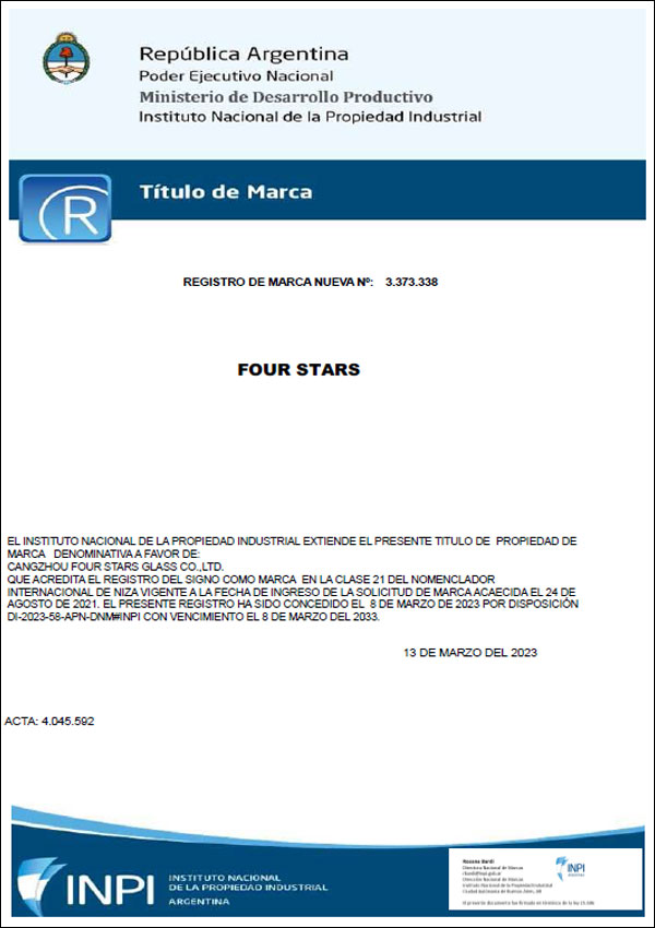 Copy Right: CANGZHOU FOUR STARS GLASS CO., LTD
