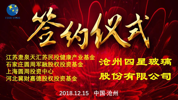 今天是一個(gè)特殊的日子!是我們四星玻璃發(fā)展史上的又一個(gè)新的里程碑,是我們公司成立26年來(lái)的又一次重大事記! 近年來(lái),四星玻璃不斷完善和提升經(jīng)營(yíng)管理質(zhì)量和管理水平,持續(xù)加大國(guó)內(nèi)外市場(chǎng)的開拓力度,營(yíng)業(yè)收入逐年增加,利稅貢獻(xiàn)連年上漲,憑借特有的技術(shù)優(yōu)勢(shì)和廣闊的發(fā)展前景獲得了眾多投資者的認(rèn)可和青睞。公司通過(guò)與投資機(jī)構(gòu)進(jìn)行廣泛接觸、深入洽談和細(xì)致調(diào)研,本著合作共贏、互利互惠的原則與四家優(yōu)質(zhì)投資機(jī)構(gòu)達(dá)成一致意見(jiàn),促成了本次簽約。
