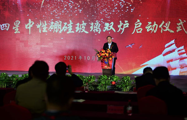 5號窯爐采用的是行業(yè)領先的“全電熔維洛法”熔化拉管技術(shù),實現(xiàn)了從配料到投料、從熔化到拉管、從檢測到包裝入庫的全過程智能化生產(chǎn);谒男枪臼嗄曛行耘鸸璨Aa(chǎn)經(jīng)驗的提煉與升華,5號中性硼硅玻璃窯爐集合了第一、二、三、四座窯爐的精華,規(guī)避了原有窯爐的不足,其熔化質(zhì)量較前四座窯爐更具優(yōu)勢,玻管顏色比以前也會有很大的提升與改進,完全能夠滿足高端客戶的特殊需求。并且,能夠多元化生產(chǎn)各品規(guī)、多用途的中性硼硅玻璃制品。 作為中國醫(yī)藥包裝協(xié)會推薦認可的國內(nèi)藥用玻璃包裝制造領域領軍企業(yè),四星公司也是擁有完全知識產(chǎn)權(quán),全部采用自有技術(shù),能規(guī);可a(chǎn)藥用中性硼硅玻璃的高新技術(shù)企業(yè)。如今,5號窯爐的成功點火對于四星公司意義重大,意味著四星公司在醫(yī)藥包裝行業(yè)又邁上了一個新的臺階。 本次項目啟動由滄州高新區(qū)黨工委書記、管委會主任夏軍主持并講話。 河北省工業(yè)和信息化廳黨組書記、廳長龔曉峰,國家工信部原材料司建材處石琳,國家食品藥品監(jiān)督管理局原副局長張文周,中國醫(yī)藥包裝協(xié)會會長蔡弘,中國醫(yī)藥管理協(xié)會會長郭云沛,中國輕工業(yè)信息中心玻璃技術(shù)信息交流委員會張守和,中國生化制藥工業(yè)協(xié)會常務副會長胡文言,河北省醫(yī)藥協(xié)會會長劉驍悍,滄州市人民政府副市長尹衛(wèi)江,滄州市工信局局長時金青,滄州市發(fā)改委副主任張國慶,滄州市科技局局長桑金歌等領導出席,滄州四星玻璃的客戶代表及企業(yè)員工代表共同參加了本次項目的啟動活動。河北省工信廳,滄州市人民政府,滄州市高新技術(shù)開發(fā)區(qū)政府的領導,行業(yè)協(xié)會領導,四星玻璃董事長為點火儀式致辭。
