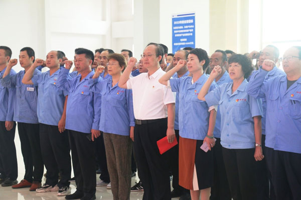 黨支部書(shū)記、董事長(zhǎng)王煥一,支部副書(shū)記、行政副總李蘭舟, 公司顧問(wèn)王建民,副總經(jīng)理范俊英,副總經(jīng)理王錦松,公司總工程師王希偉,公司顧問(wèn)段玉新等黨員領(lǐng)導(dǎo)干部,公司全體黨員、部分提出入黨申請(qǐng)的積極分子等110人參加或列席活動(dòng)。李蘭舟主持儀式。