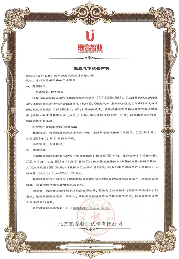 附件:滄州四星玻璃股份有限公司產(chǎn)品碳足跡報告 [點擊查看詳情]