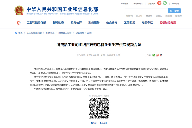 | 工信部消費(fèi)品工業(yè)司組織召開藥包材企業(yè)生產(chǎn)供應(yīng)視頻會議 |